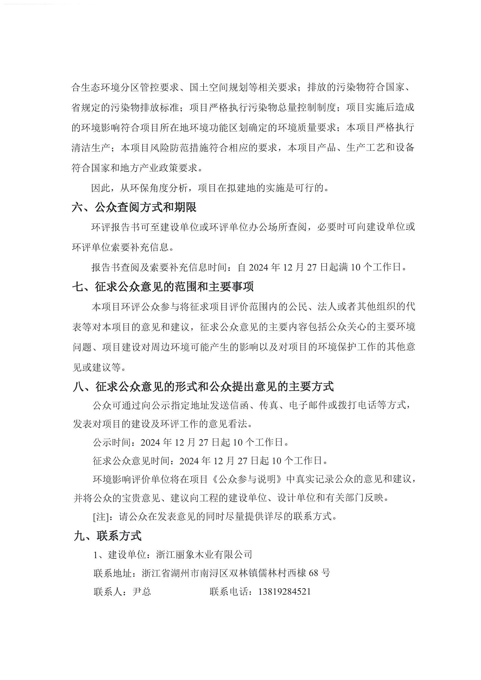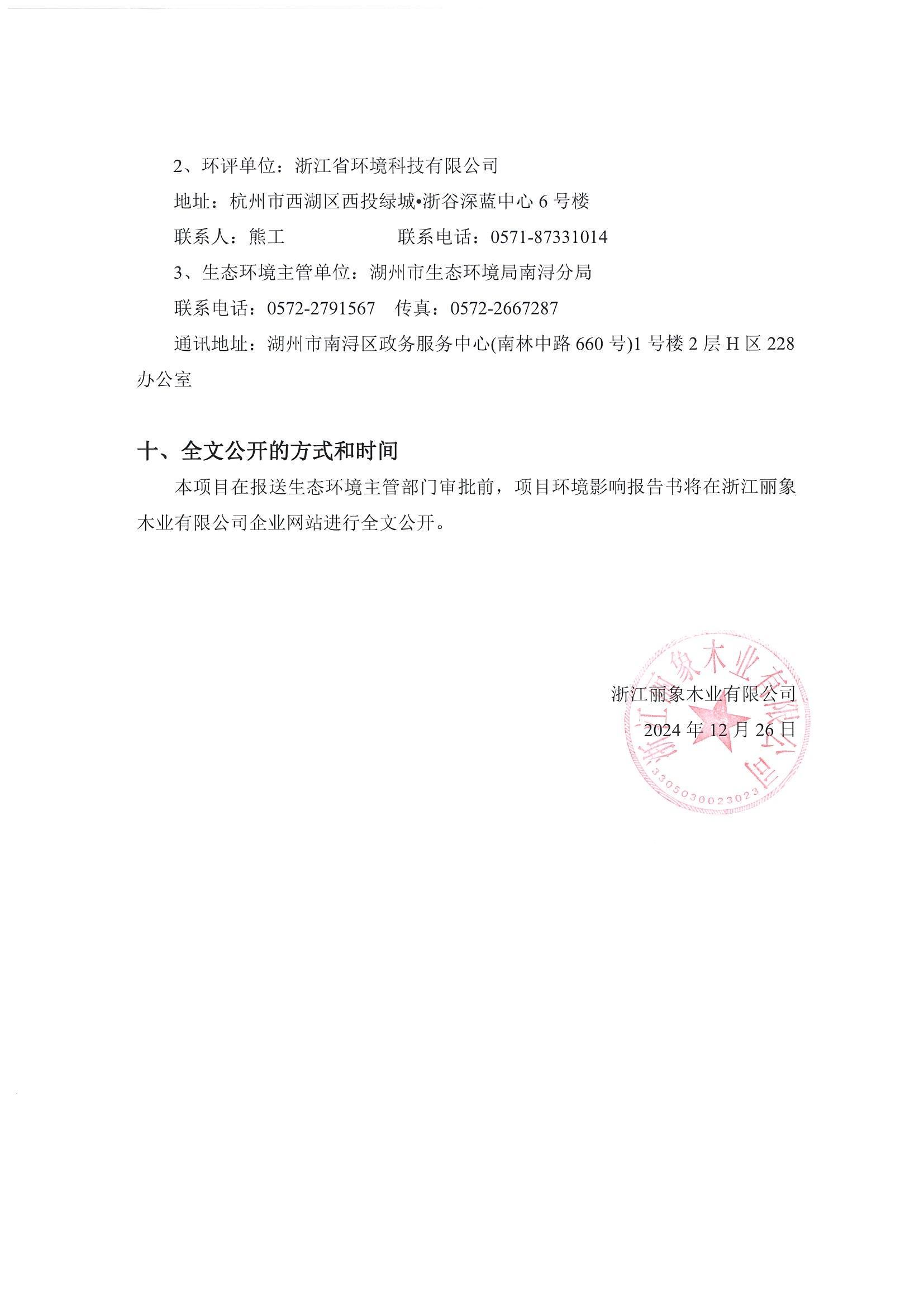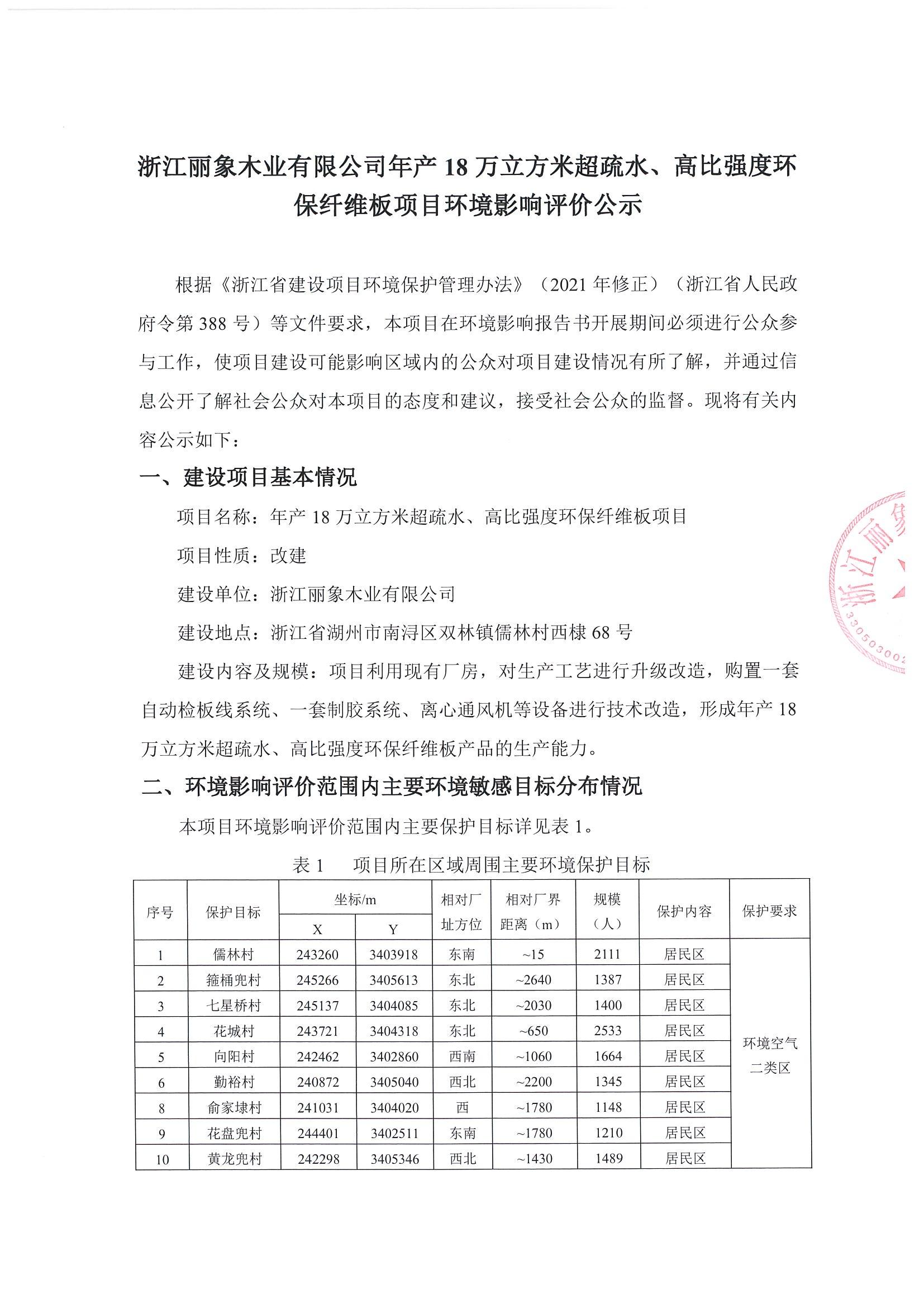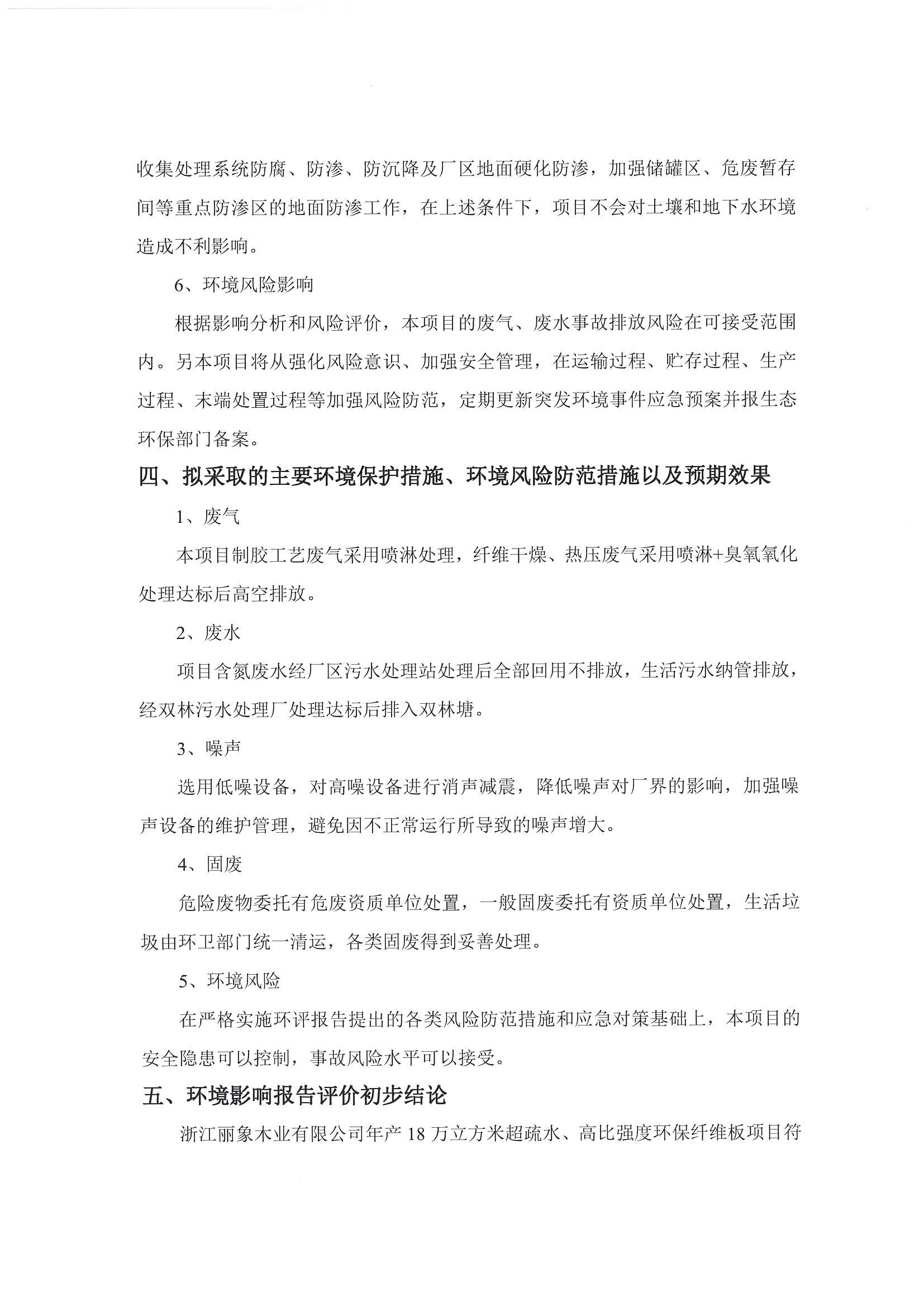 浙江麗象木業有限公司年產18萬立方米超疏水、高比高度環保纖維板項目環境影響評價公示